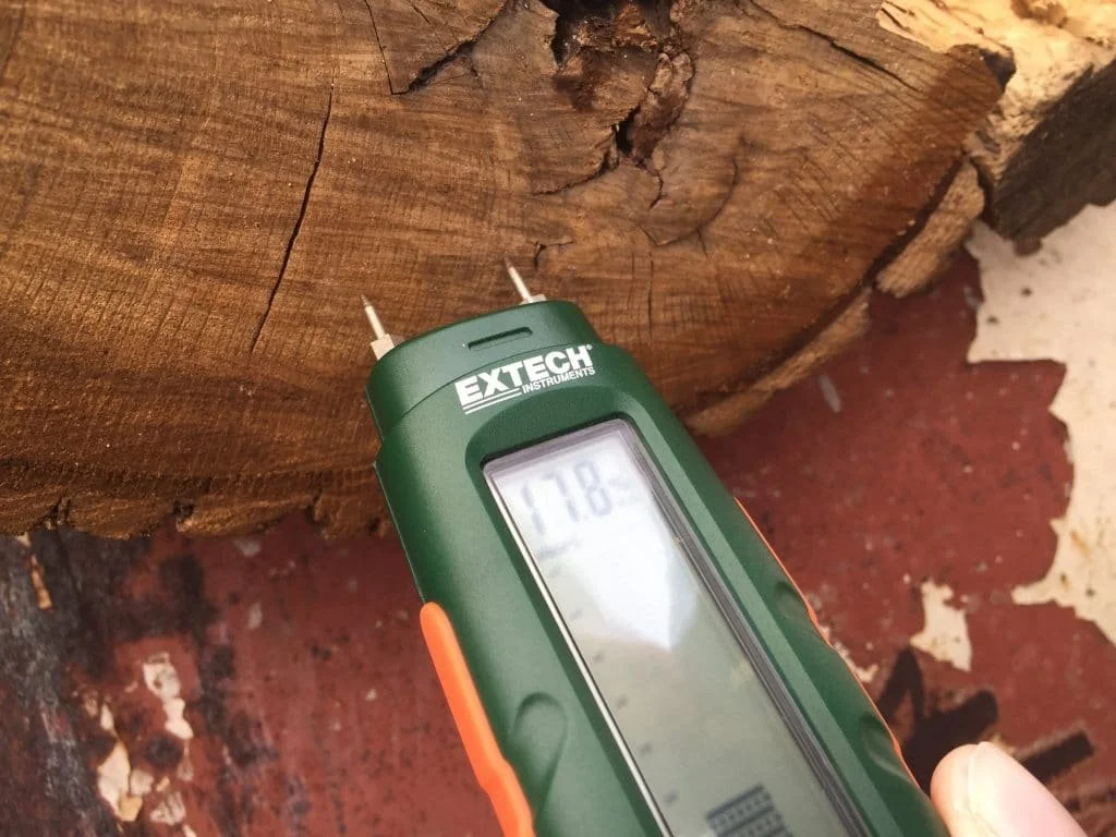 Pour mesurer l’humidité, il faut un humidimètre spécial bois. Le bois coupé récemment contient plus de 50 % d’eau et doit sécher 18 à 24 mois dans un endroit sec et aéré, à l’abri de la pluie.